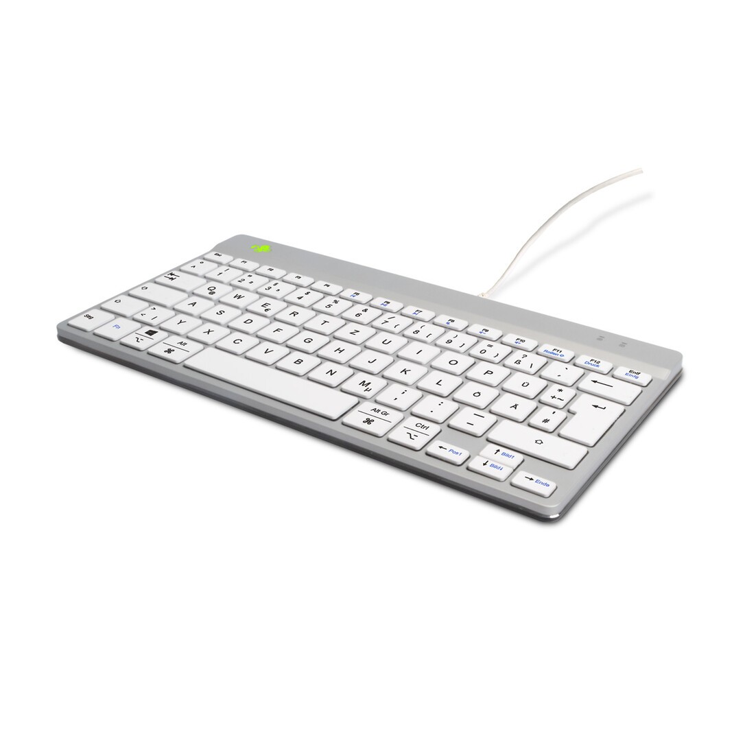 R-Go Tools Ergonomische Tastatur R-Go Compact Break, kompakte Tastatur mit Pausensoftware, QWERTZ (DE), Kabelgebunden, Weiß, Mini, Kabelgebunden, USB, Scherenschalter, QWERTZ, Weiß