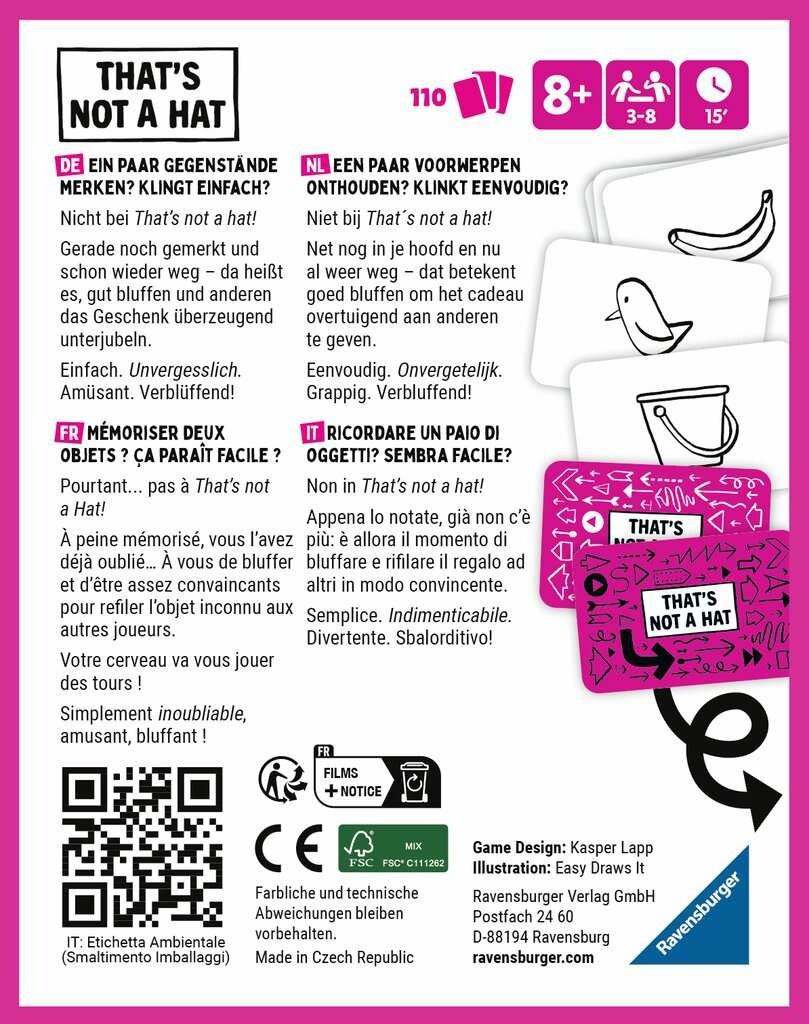 Ravensburger - 20954 That's not a hat - Partyspiel, Kartenspiel für 3-8 Personen, lustige Unterhaltu