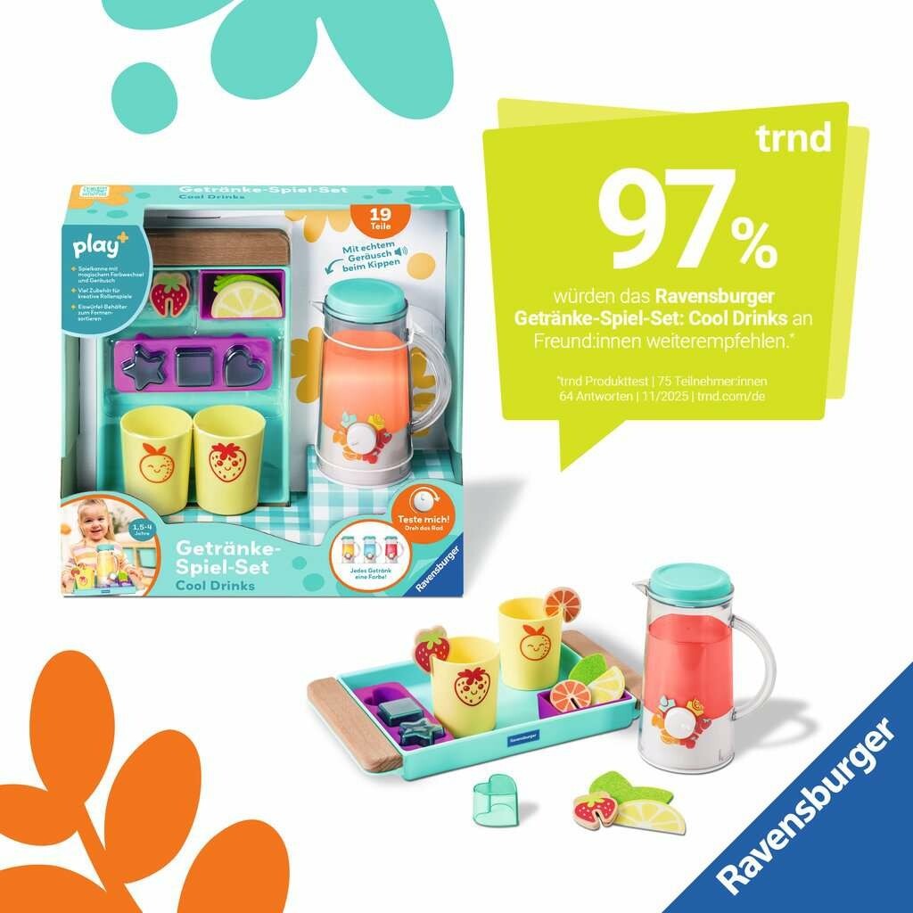 Ravensburger Play+ Getränke-Spiel-Set: Cool Drinks, Pretend Play Set, Spielzeug ab 18 Monate, Küchen