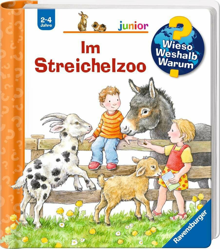 Hier ist Streicheln und Füttern erwünscht! Im Streichelzoo können schon die Kleinsten viele ihrer Lieblingstiere hautnah erleben und besser kennen lernen. Wo wohnen die Schweine? Wie unterscheiden sich Ponys und Esel? Wer hat die längsten Hörner? Mit Bewegungsklappen entdecken Kinder Ziegen, Schafe, Esel, Kaninchen, Meerschweinchen und viele andere Tiere. Leicht verständliche Texte vermitteln erstes Sachwissen über die Lebensweise und Besonderheiten der einzelnen Tierarten.Wieso? Weshalb? Warum? juniorDie Sachbuchreihe für Kinder von 24 JahrenJeden Tag entdecken Kinder etwas Neues und haben viele Fragen. Wann kommt die Feuerwehr? Was machen die Tiere im Winter? Warum muss ich Zähne putzen? Die beliebte Sachbuchreihe Wieso? Weshalb? Warum? junior beantwortet die Fragen der Kinder auf Augenhöhe. Sie beleuchtet unterschiedlichste Themen aus ihrer Alltags- und Interessenswelt altersgerecht und mit viel Liebe zum Detail.Die Reihe ist speziell auf kleine Hände und die Bedürfnisse der Kleinsten angepasst. Klare und liebevolle Bilder, kurze Sachtexte sowie handliche Klappen, die Bewegungen veranschaulichen und überraschende und lustige Einblicke gewähren, ermöglichen Kindern, sich ihre Themen selbst zu erschließen. Der Spaß am eigenhändigen Entdecken, die liebevolle Umsetzung und die hochwertige Ausstattung garantieren langanhaltende Freude an jedem Buch.