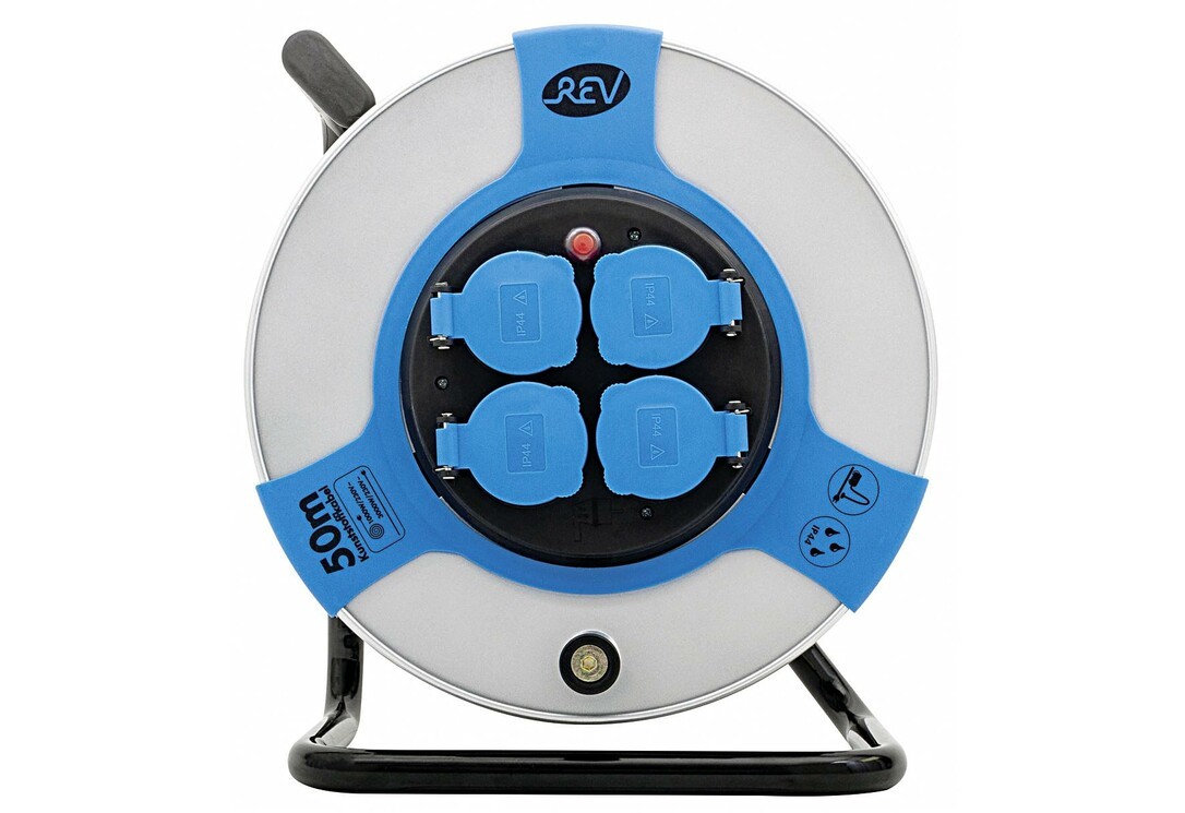 Kabeltrommel - Stahlblech - 4-fach - IP 44 - 50 m - H05VV-F 3G1,5 - st-bl