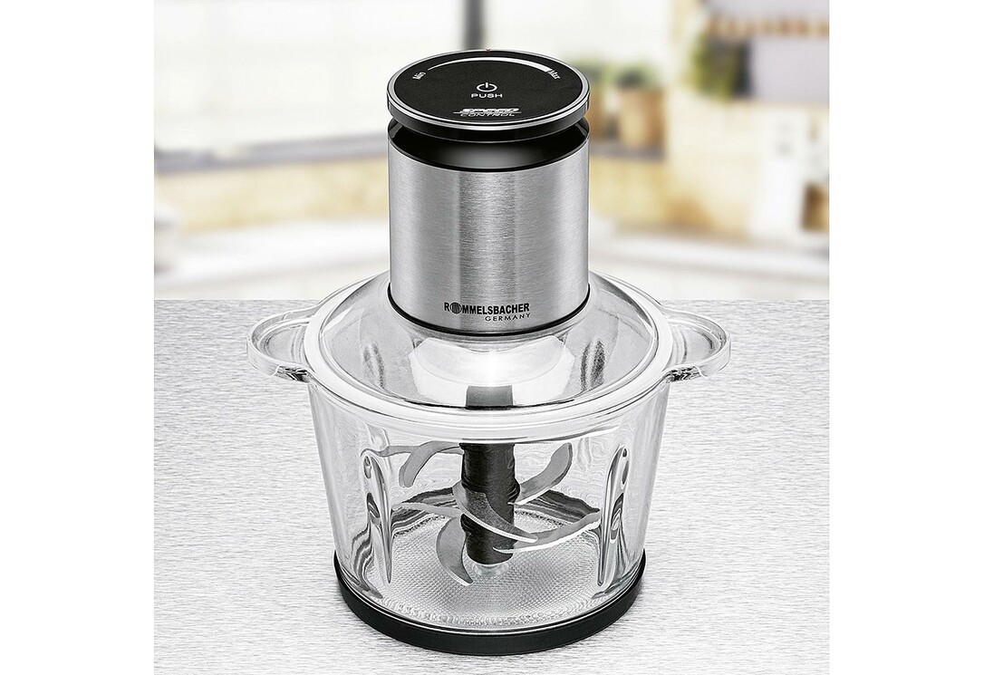 Manchmal muss es etwas mehr sein! Und genau dafür gibt es die hochwertigen extra-großen Multi Zerkleinerer von ROMMELSBACHER. Hacken, Schneiden, Pürieren, Vermischen – mit einem leichten Druck auf die Start/Stopp Taste verarbeitet das Gerät Zwiebeln, Kräuter, Gemüse, Obst, Nüsse, Fleisch & mehr. Dabei lässt sich die Drehzahl des Messers in 22 Stufen regulieren, so dass jedes Lebensmittel perfekt zerkleinert, jede Mischung perfekt zubereitet wird. Im Handumdrehen entstehen gesunde, vitaminreiche Rohkostsalate, cremige Brotaufstriche, fantasievolle Dips, Pesto und noch viel mehr. Die vielflügeligen Messer (6 beim MZ 600, 9 beim MZ 800) sind aus rostfreiem Edelstahl, arbeiten durch ihre Anordnung extra effizient und liefern perfekte Ergebnisse. Der klare Glasbehälter ist äußerst robust, lebensmittelneutral, hygienisch und sehr leicht zu reinigen. Ein kraftvoller Motor meistert alle Anforderungen leise und vibrationsarm und integrierte Sicherheitsfeatures machen das Arbeiten sicher. Zur leichten Reinigung können alle abnehmbaren Teile in die Spülmaschine. Dieser praktische und zuverlässige Multi Zerkleinerer ist in zwei Größen erhältlich, so dass sich für jeden großen Haushalt das passende XL-Modell findet.