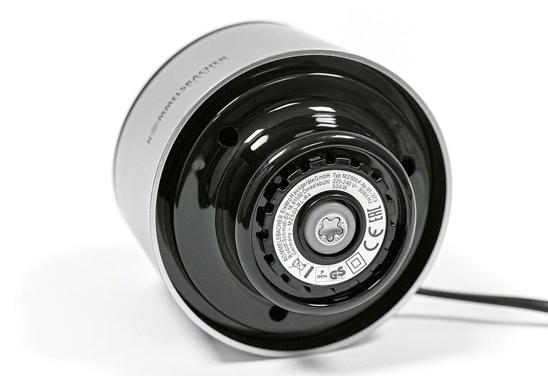Rommelsbacher MZ 500. Bowl capacity: 1.5 L. Product colour: Black,Stainless steel, Bowl material: Glass, Blade material: Stainless steel. Power: 500 W, AC input voltage: 230 V