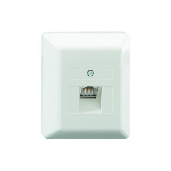 Rutenbeck 13010129. Socket type: RJ-45, Operating temperature (T-T): -5 - 50 °C. Product colour: White, Housing material: Plastic, International Protection (IP) code: IP20. Rated voltage: 125 V, Rated current: 1 A. Width: 65 mm, Depth: 26 mm, Height: 80 mm