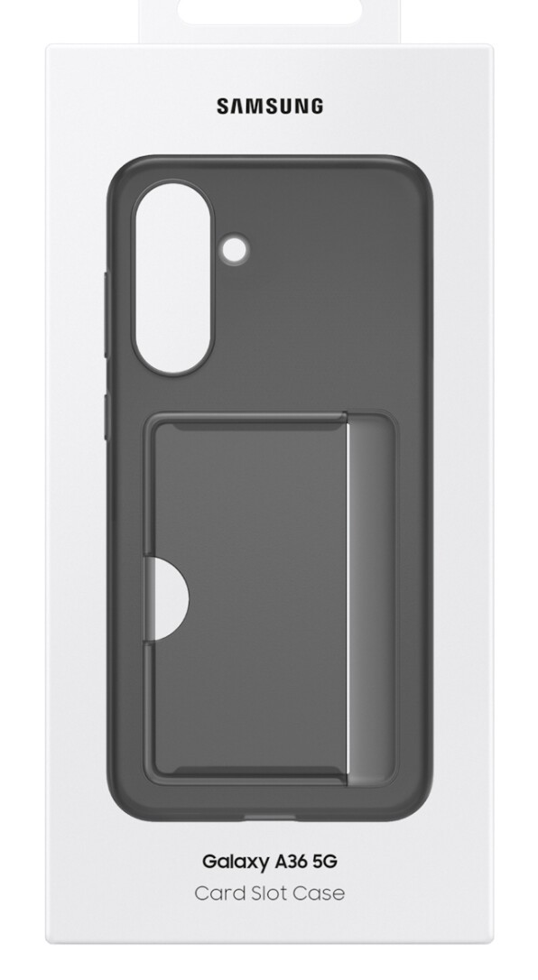 Samsung Card Slot Case für das Galaxy A36 5G. Etui-Typ: Cover, Markenkompatibilität: Samsung, Kompatibilität: Galaxy A36 5G, Maximale Bildschirmgröße: 17 cm (6.7"), Oberflächenfärbung: Einfarbig, Produktfarbe: Schwarz, Anzahl der Kartentaschen: 1