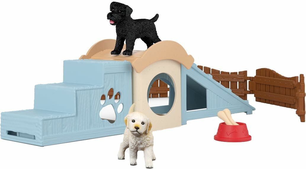 Die Abenteuerzeit für Welpen hält jede Menge Spielspaß für die kleinen Racker bereit. Die zwei Welpen können die Treppen hochhüpfen oder die Rampe entlangsausen. Und wenn das Dach der Hundehütte abgenoen wird, können sie es sogar als Wippe benutzen. Hier können sich die zwei Energiebündel garantiert auspowern. In der Hundehütte ruhen sie dann aus und nagen etwas am Knochen. Herrlich!