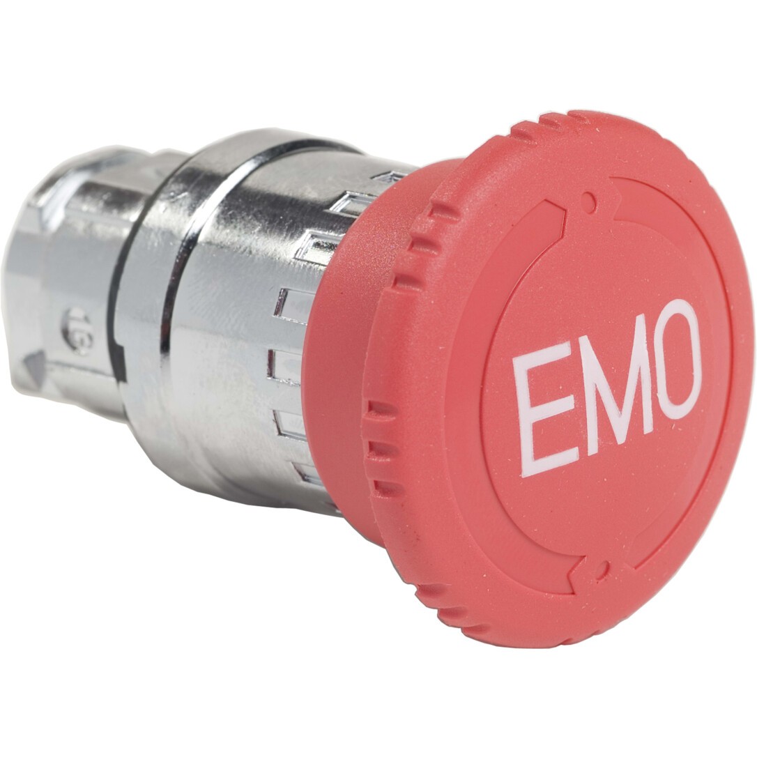 Pilzdrucktaster 22 mm. Produktserie: Harmony XB4. Produkt oder Komponententyp: Kopf für Notausschalter. Kurzbezeichnung des Geräts: ZB4. Blendenmaterial: Chrom-beschichtes Metall. Montagedurchmesser: 22 mm. Verkauf je unteilbare Menge: 1. Form des Signaleinheitkopfes: Rund. Operatortyp: Auslösung und mechanische Verriegelung. Rückstellung: Zum Auslösen drehen. Profil Betätigungselement: Rot Pilz Ø 40 EMO.