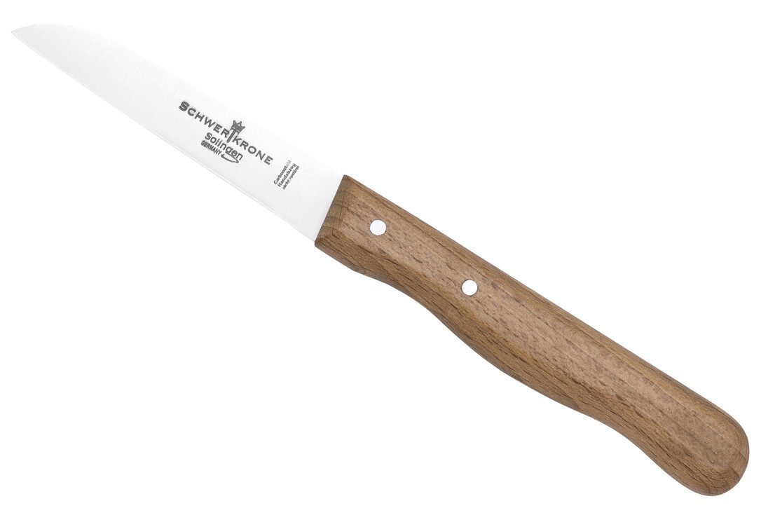 Die Küchenmesser von Schwertkrone werden in Solingen gefertigt und entsprechen höchsten Qualitätsansprüchen. Die doppelt genieteten Griffe aus Buchenholz sind Handschmeichler und die scharfen Klingen machen die Zubereitung von Speisen zum Kinderspiel. Die Küchenmessern mit gerader 7,5 Klinge und einer Gesamtlänge von 17,5 sind ideal zum täglichen Arbeiten in der Küche geeignet. Die Klingen sind aus 1.1545 Carbon-Stahl gefertigt und von Hand abgezogen. Nicht rostfrei! Holz ist ein Naturprodukt! Wuchs, Farbe und Struktur sind bei jedem Baum einzigartig. Abweichungen sind naturbedingt. Alle Produkte sind nicht spülmaschinengeeignet und sollten per Hand gewaschen und regelmäßig mit haushaltsüblichem Öl gepflegt werden damit Sie lange Freude an Ihren neuen Messern haben.