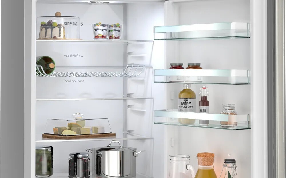 Siemens iQ300 KG39N2IAG. Nutzinhalt Gesamteinheit: 103 l. Türscharnier: Rechts. Klimaklasse: ST-T, Geräuschpegel: 29 dB. Nutzinhalt Kühlschrank: 103 l, Multi Airflow System (Kühlschrank), Innenbeleuchtung Kühleinheit, Kühlschrank - Anzahl der Ablagen/Körbe: 5. Nutzinhalt Gefrierfach: 103 l, NoFrost-Funktion (Gefriereinheit). Fresh Zone Fach. Energieeffizienzklasse: A, Jährlicher Energieverbrauch: 112 kWh. Produktfarbe: Gebürsteter Stahl