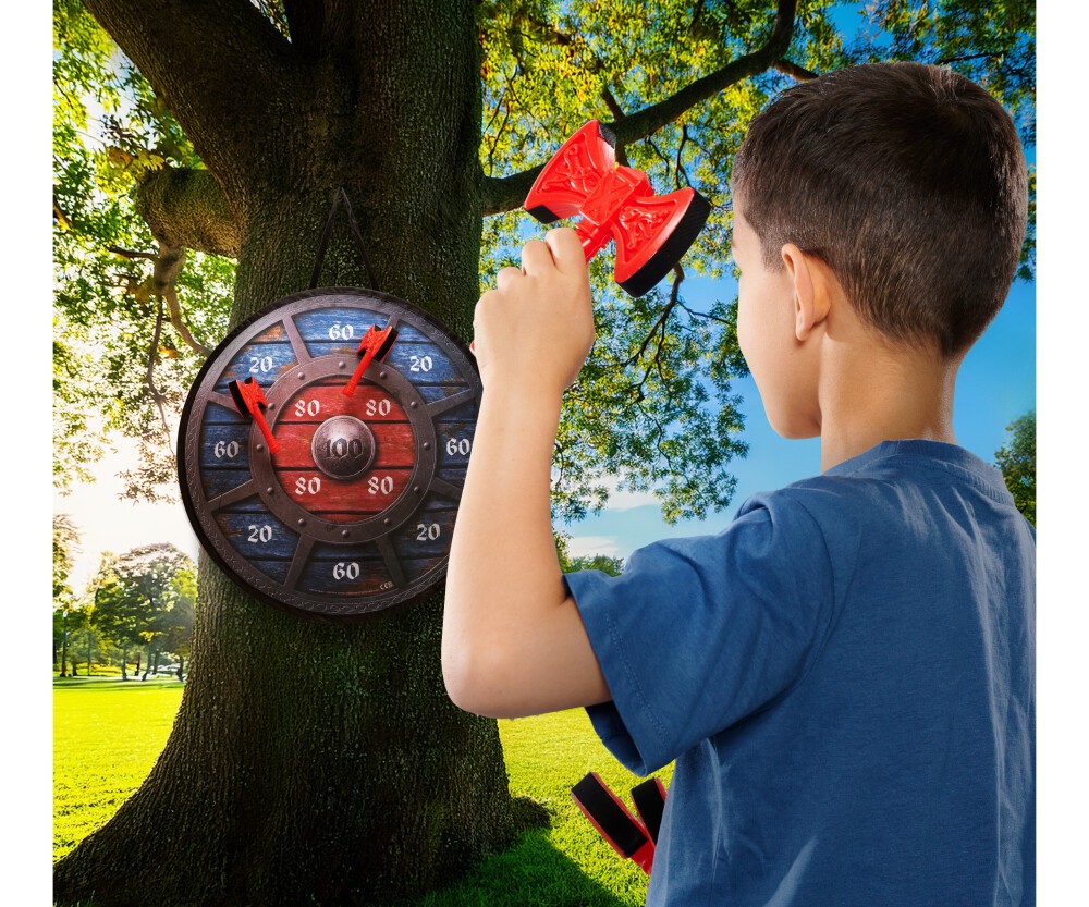 Sicherer Wurfspaß für Jung und Alt Dieses Set enthält 3 weiche, aber realistische Doppeläxte und eine große, bunte Stoff-Zielscheibe. Anders als beim traditionellen Axtwerfen ist diese Variante absolut sicher und perfekt für Kinder ab 3 Jahren geeignet. So können auch die Kleinsten den Spaß am Zielen und Werfen entdecken. Fördert Geschicklichkeit und Konzentration Beim Axtwurfspiel kommt es auf Präzision und Konzentration an. Du und deine Lieben trainiert spielerisch eure Zielgenauigkeit und Koordination. Wer schafft es, die Mitte der bunten Zielscheibe zu treffen? Ein spannender Wettbewerb ist garantiert! Einfach aufzubauen und überall spielbar Die Stoff-Zielscheibe lässt sich leicht aufhängen und ist im Handumdrehen einsatzbereit. Ob im Garten, im Park oder sogar drinnen, wenn genügend Platz vorhanden ist dieses Spiel sorgt überall für gute Laune und aktive Unterhaltung.