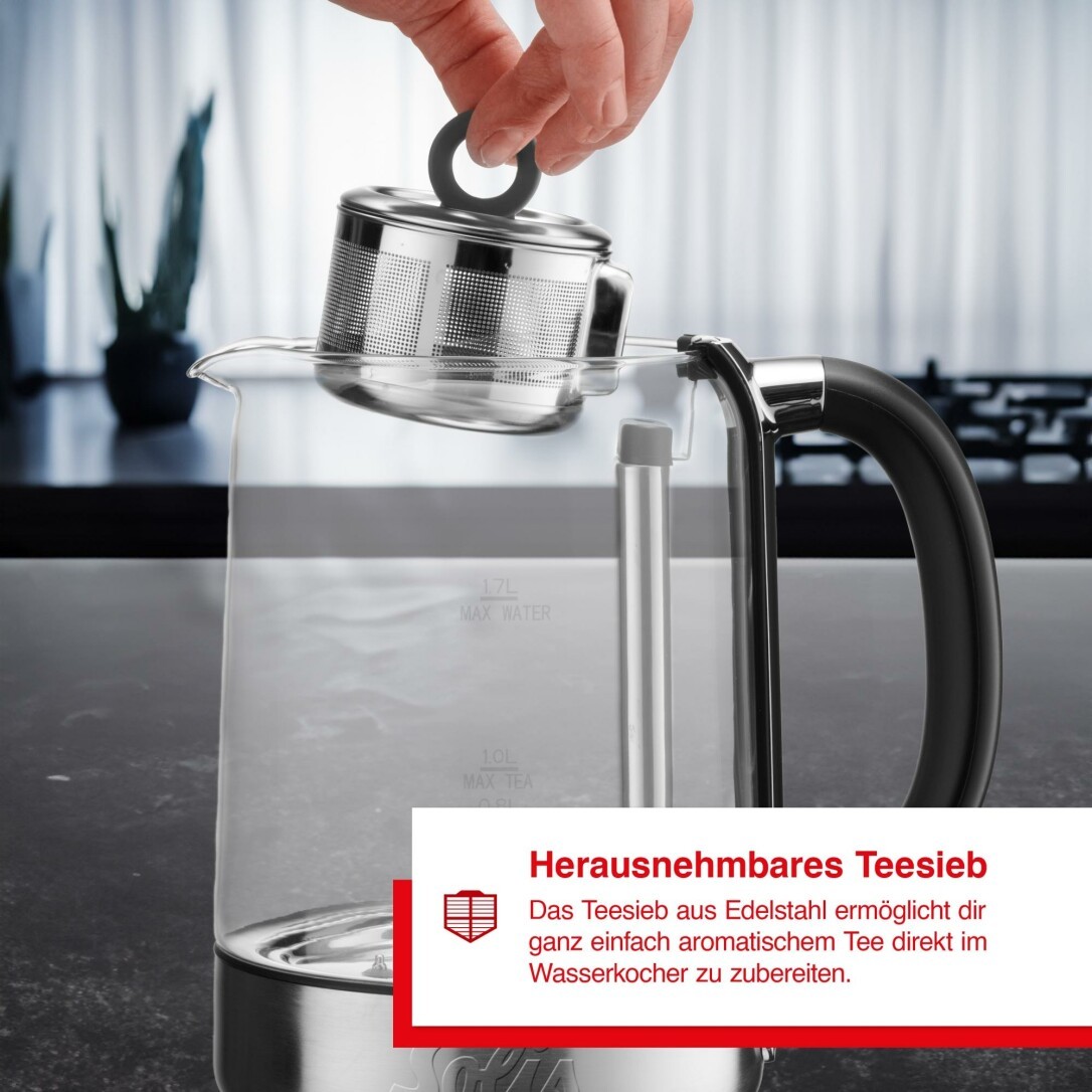 Bitte per Hand reinigen: Glaskrug, Teesieb und Deckel sind nicht für die Spülmaschine geeignet.