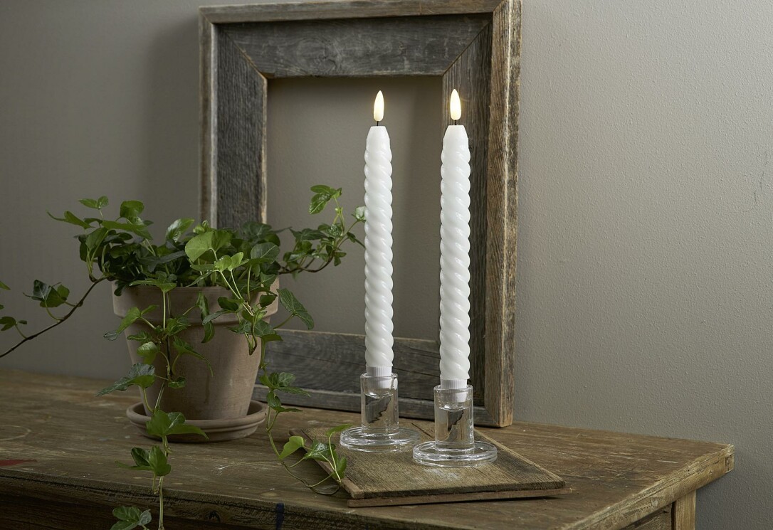 STAR TRADING LED-Echtwachs-Leuchterkerze "Flamme Swirl Antique" 2er Set