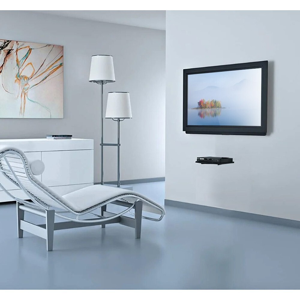 Techly ICA-DRS-504. Product colour: Black, Shelves material: Glass, Material: Aluminium. Maximum weight capacity: 8 kg, Mounting type: Wall. Width: 300 mm, Depth: 250 mm, Overall height: 48.5 cm