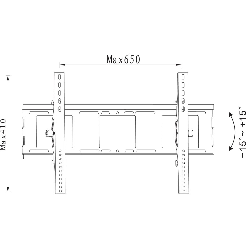 Techly ICA-PLB 231L. Höchstgewichtskapazität: 50 kg, Minimum Bildschirmgröße: 81,3 cm (32"), Maximale Bildschirmgröße: 177,8 cm (70"), Minimale VESA-Halterung: 200 x 200 mm, Maximale VESA-Halterung: 600 x 400 mm. Neigungswinkelbereich: -15 - 15°, Abstand zur Wand (min): 6,5 cm. Produktfarbe: Schwarz