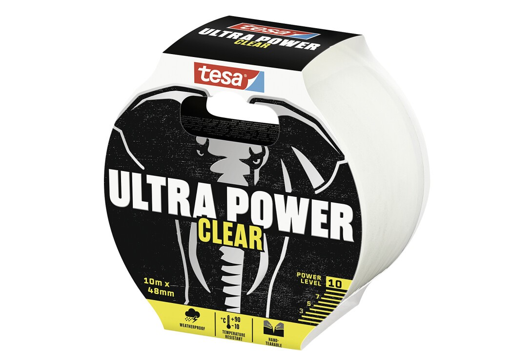 TESA Ultra Power Clear. Tape colour: Transparent, Tape purpose: Repairing, Material: Polyethylene. Minimum operating temperature: -10 °C, Maximum operating temperature: 90 °C. Length: 10 m, Width: 48 mm, Thickness: 0.17 mm