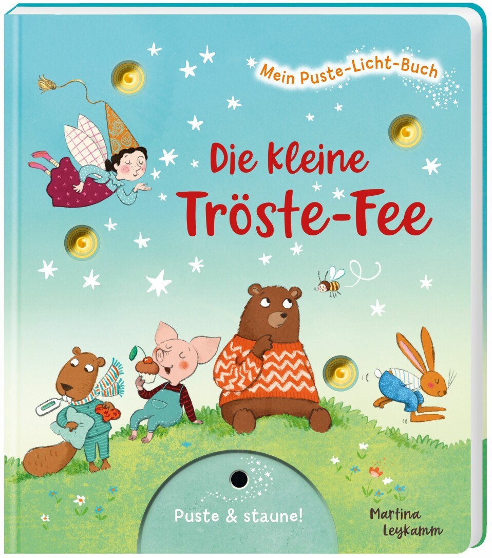 Die kleinen Tiere haben allerhand Wehwechen: Der kleine Hase ist hingefallen, den Biber hat eine Erkältung erwischt, der Bär ist von einer Biene gestochen worden und das Schweinchen hat ganz doll Bauchweh. Zum Glück gibt es die Tröstefee! Durch Pusten und mit ein bisschen Funkelzauber ist schnell alles wieder gut. Puste mit der Tröste-Fee und schon tut es nicht mehr weh!Dieses Pappebuch für Kinder ab 18 Monaten begeistert durch seinen magischen Mitmach-Effekt: Einmal pusten und die Lichter beginnen zu leuchten!Die im Buch integrierten LED-Lämpchen werden duch den Luftstrom beim Pusten aktiviert und beginnen wie durch Zauberhand zu leuchten!