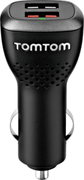 TomTom High-Speed Dual-Charger. Charger type: Auto, Power source type: Cigar lighter, Charger compatibility: Universal. Input voltage: 12 - 24 V, Maximum output voltage: 5 V. USB 2.0 ports quantity: 2. Product colour: Black