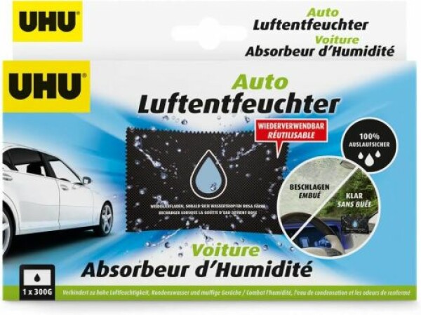 UHU Auto Luftentfeuchter ist die perfekte Lösung für beschlagene Scheiben und sonstige Feuchtigkeitsprobleme in Ihrem Auto, da das Produkt zu hohe Luftfeuchtigkeit, Kondenswasser und muffige Gerüche verhindert. Der Entfeuchter absorbiert schnell überschüssige Feuchtigkeit und macht so Ihre Autofahrt sicherer.