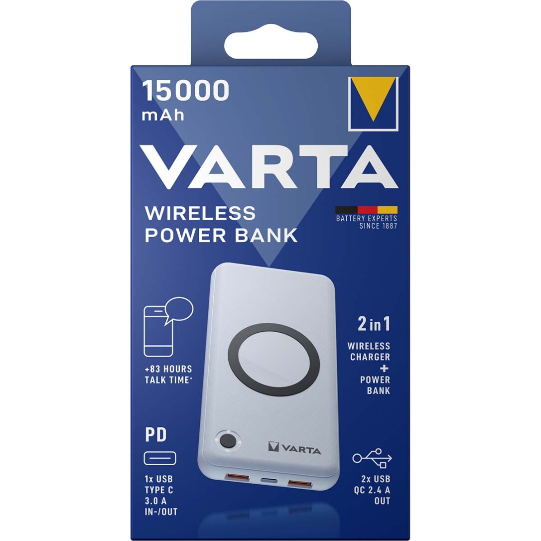 Die VARTA 2-in-1 Wireless Power Banks gibt es in 3 verschiedenen Kapazitäten von 10.000 mAh bis 20.000 mAh, um jeden individuellen Energiebedarf zu decken. Das Produkt unterstützt 10 W kabelloses Schnellladen und verfügt über Power Delivery und Quick Charge, um superschnelles und intelligentes Laden mit bis zu 20 W zu unterstützen. Die fortschrittliche Sicherheitstechnologie und das Pass-Through-Charging machen die VARTA Wireless Power Banks zur perfekten Energiequelle für die Unabhängigkeit unterwegs.