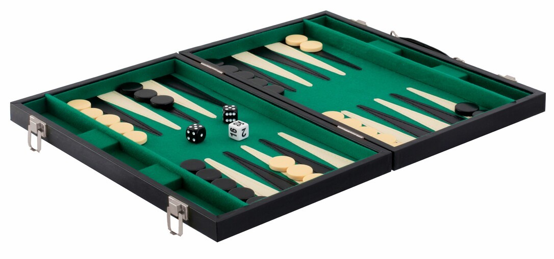 Classic Games Backgammon Kunstleder, für 2 Spieler. Ein klassisches Strategiespiel. Maße ca. 36,6x34x5,5 cm. Spielbrettgröße ca. 47x37 cm. Für Kinder ab 6 Jahren.