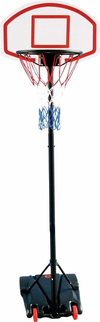 New Sports Basketballständer ist höhenverstellbar von 165-205cm Ringhöhe, inklusive Rahmenschutz. Befüllbares Fußteil mit 2 Transporträdern. Boardgröße 74x45cm. Durchmesser Ring 40cm. Für Kinder ab 3 Jahren.