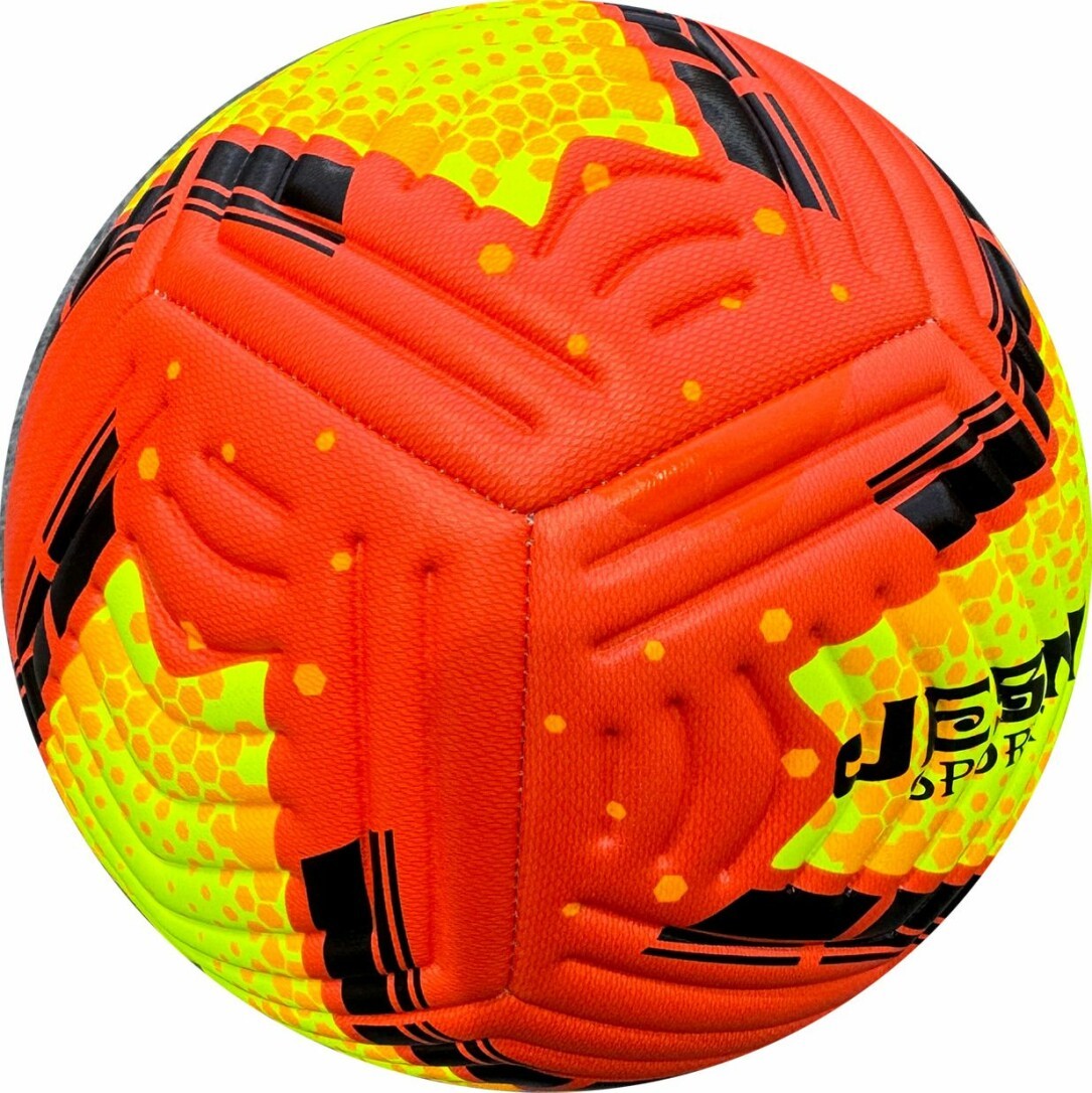 New Sports Fußball in der Farbe orange/gelb. Größe 5, unaufgeblasen. Aus PVC mit einer Materialstärke von ca. 3,5 mm und einer Nylon Blase. Gewicht ca. 400 Gramm.
