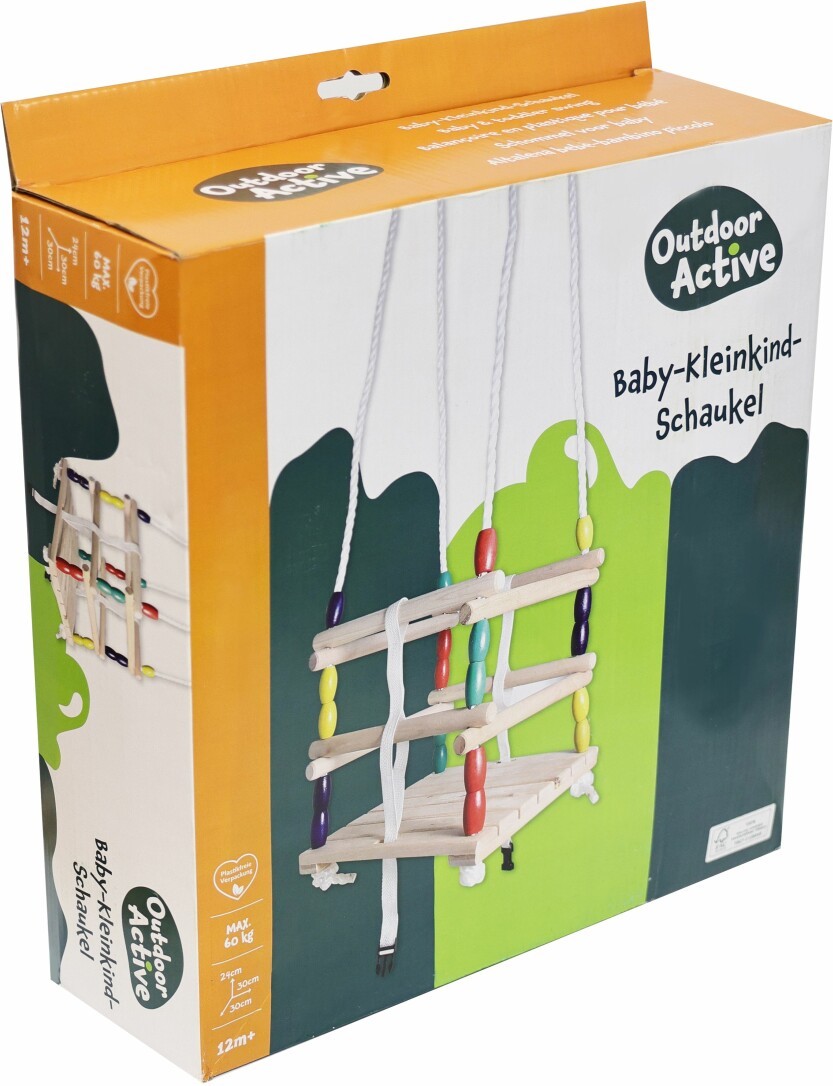 Outdoor active Gitterschaukel aus Holz. Massiv und wetterbeständig. Ausgestattet ist die Schaukel mit starken Kunststoffseilen, Seillänge bis zu ca. 180cm. Sitzfläche: ca. 30x30cm. Maximale Tragkraft 60kg. Für Kinder ab 12 Monaten.
