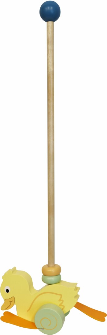SpielMaus Holz Schiebetier Ente. Die Watschelfüße erwecken den Eindruck, das die Ente mitläuft. Maße ca. 15x8x58 cm. Für Kinder ab 12 Monaten.