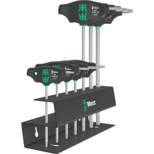 Quergriff-Schraubendreher: Die ideale Griffform ermöglicht die Übertragung besonders hoher Anzieh- und Lösemomente. Die ergonomische Form des Griffs füllt den Handballen gut aus, die Finger liegen sicher in den weich gerundeten Griffmulden. Die ganze Hand findet Kontakt zum Griff und Reibungsverluste zwischen Hand und Griff werden vermieden. Mit Haltefunktion zum sicheren Halt der TORX Schraube auf dem Werkzeug. Spezielle Oberflächenvergütung für hohen Korrosionsschutz und optimale Passgenauigkeit in der Schraube. Inklusive Metallrack zur Aufbewahrung. Das Rack kann auf die Werkbank gestellt oder in die Werkzeugwand gehängt werden.
