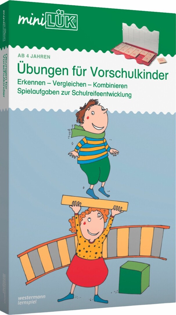 Erkennen, Vergleichen, Kombinieren Spielaufgaben zur Schulreifeentwicklung. Vielseitige Übungen zur Beobachtungs-, Kombinations- un d Denkfähigkeit. Ein wesentlicher Beitrag zur Verbesserung der Schulreife. Inhalt: miniLÜK-Lösungsgerät mit Klarsichtspielteil, Übungshefte Übungen für Vorschulkinder 1 und 2.