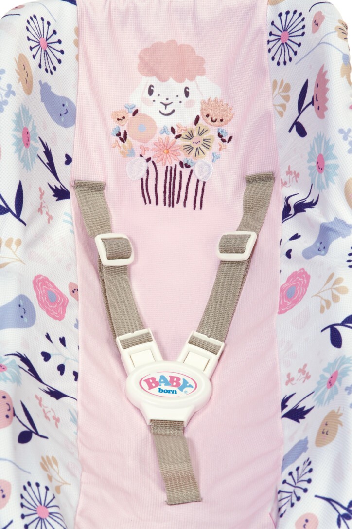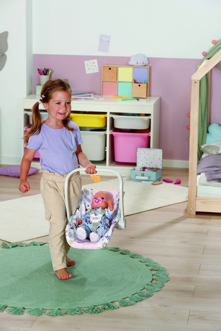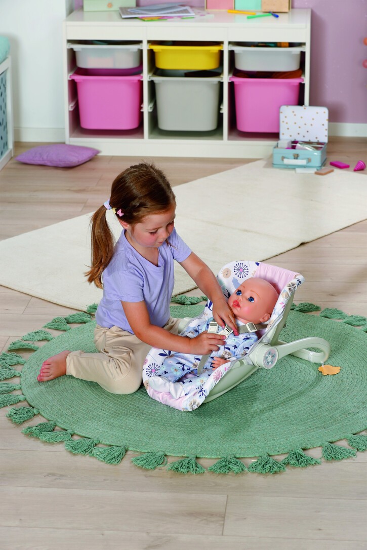 BABY born Babyschale für Puppen mit Blumenmotiv und schwenkbaren Tragegriff und 3-Punkt-Gurt, für 36 cm und 43 cm große Puppen