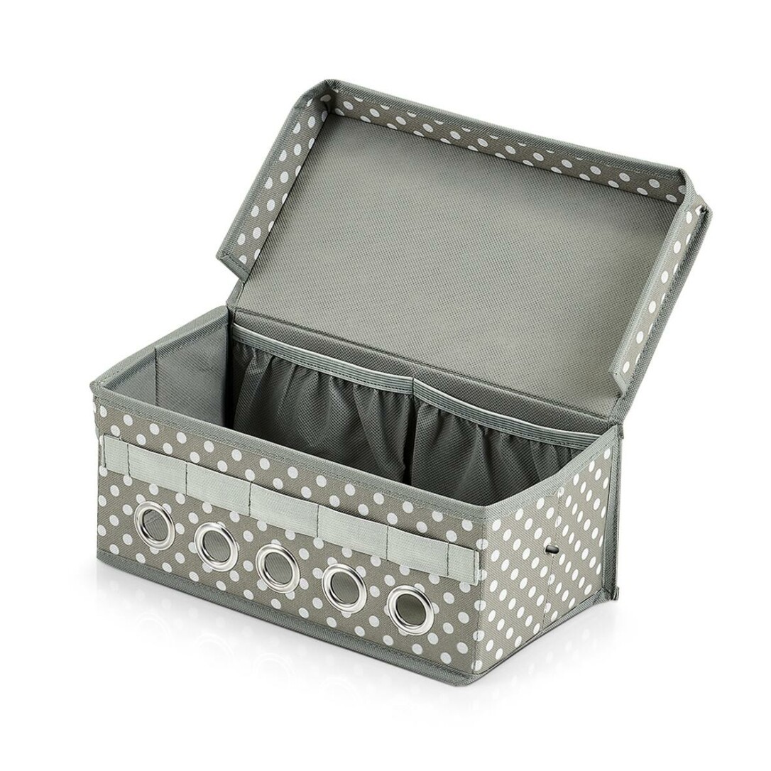 Chaos bei der Aufbewahrung von Geschenkbändern? Mit unserer praktischen Geschenkband-Box gehört das nun der Vergangenheit an. Der Trennstab im Inneren der Box sorgt dafür, dass Sie bis zu 5 Geschenkbandrollen ordentlich aufbewahren und abrollen können. Mittels der Ösen und der an der Außenseite angebrachten Gummilaschen können Sie das Geschenkband ganz einfach abrollen und die Enden bleiben an der gewünschten Stelle. Die beiden Innenfächer der Box schaffen zusätzlichen Stauraum für Schere, Klebeband und Co. Die praktische Geschenkband-Box sorgt für Ordnung und ist somit unverzichtbar zur Aufbewahrung von Geschenkbändern.