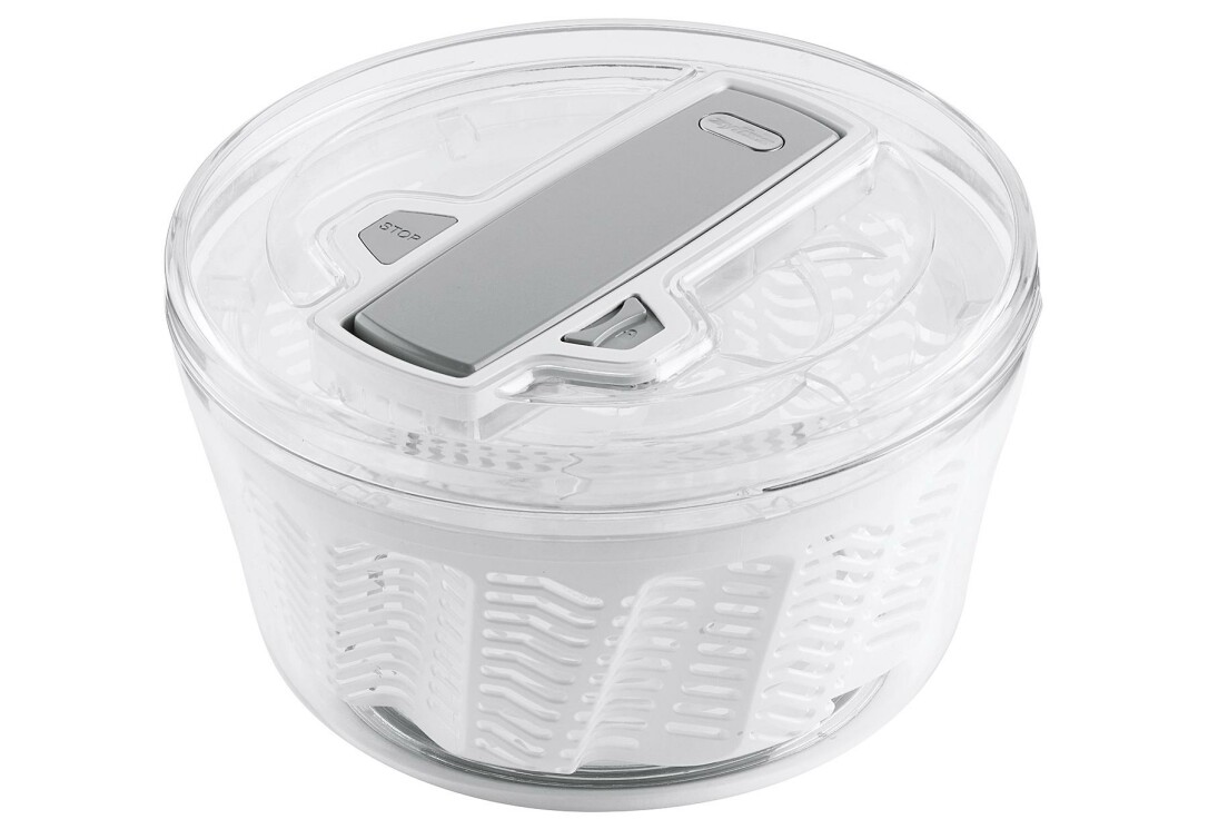 Die Zyliss Salatschleuder Swift Dry besticht nicht nur durch ihr einzigartiges Design, sondern ist auch funktionell ein Meisterwerk. Ausgestattet mit der einzigartigen AquaVentTM - Technologie, entfernt sie 25 % mehr Wasser. Luftschlitze im Siebdeckel und -boden maximieren die Luftzufuhr und den Wasserablauf. Die Schüssel kann auch als Salatschale verwendet werden. Zudem ist die Schleuder aufgrund der abnehmbaren Antriebsscheibe besonders leicht zu reinigen. Diese Salatschleuder wurde mit dem reddot design award ausgezeichnet und ist zum Patent angemeldet. Mit einer über 60-jährigen Erfahrung im Bereich Küchengeräte-Design und der Zubereitung von Lebensmitteln auf höchstem Niveau gehört Zyliss zu einer der bekanntesten Marken weltweit, die vom Hobbykoch bis zum Küchenprofi geschätzt wird.